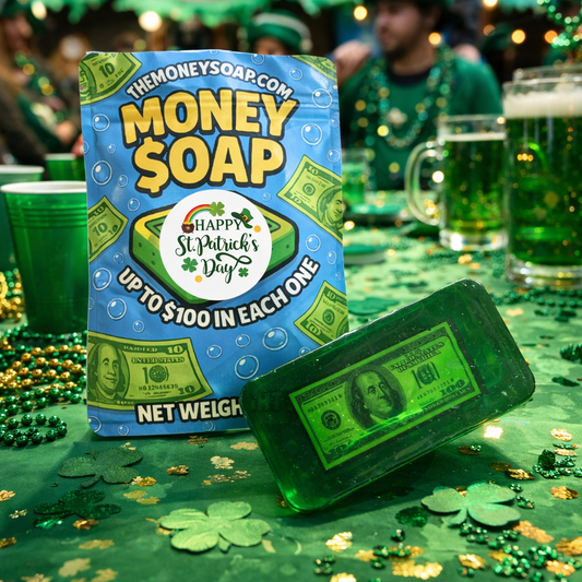 St Patrick's Day Green Money Soap Bar with Real Cash Inside