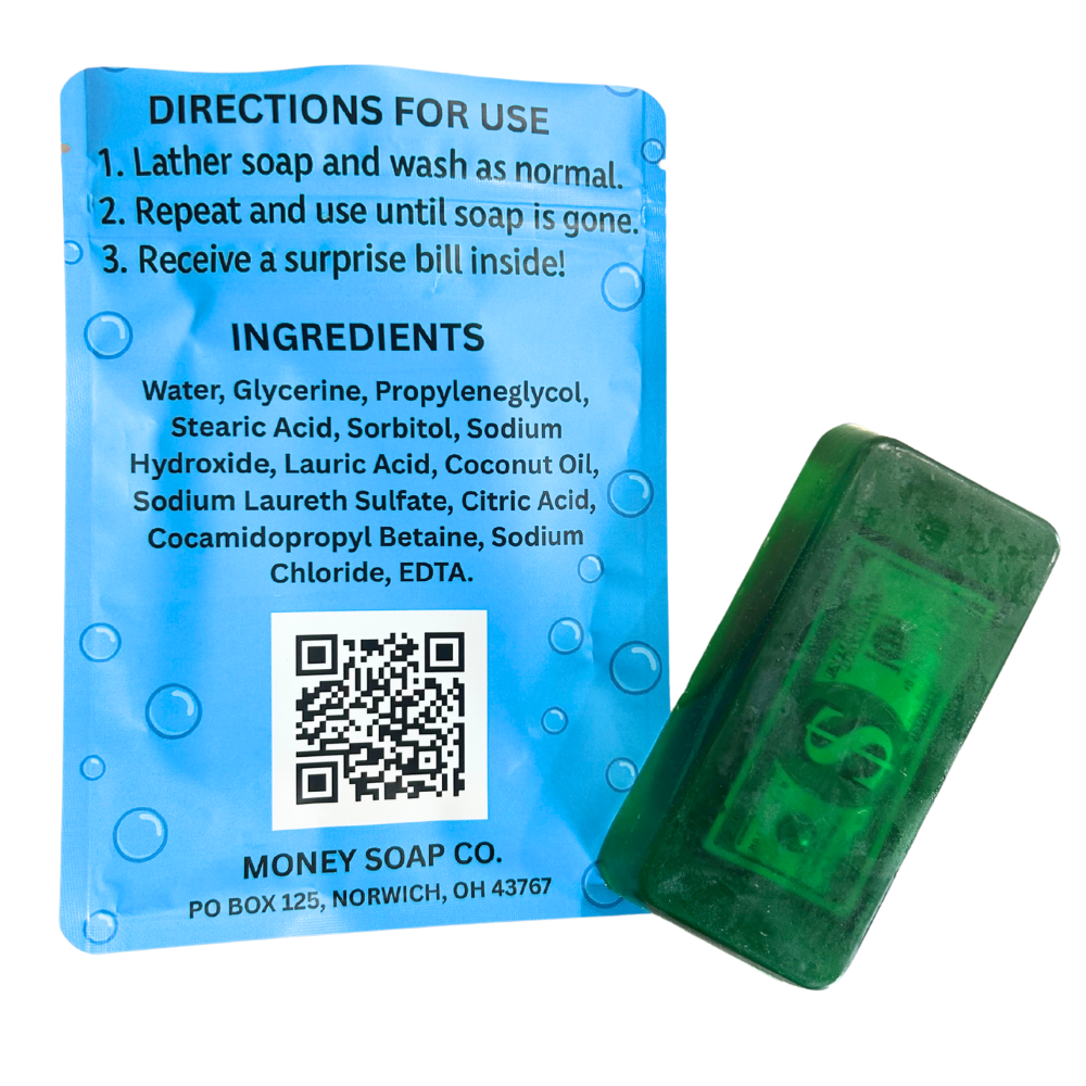 Perfect for birthdays, holidays, graduations, or just because, our Money Soap makes gift-giving exciting and memorable. Will you be the lucky one to discover the $100 bill?