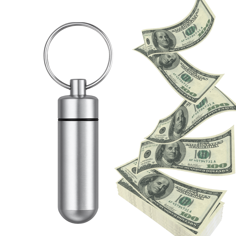 Discover the perfect combination of functionality and fun with our Metal Keychain Stash with Real Money Inside. Each durable metal keychain features a hidden screw-top compartment that conceals real U.S. cash—ranging from $1 to $100. Whether you're looking for a cool novelty gift, a unique money surprise, or a sleek everyday accessory, this stash keychain delivers.
